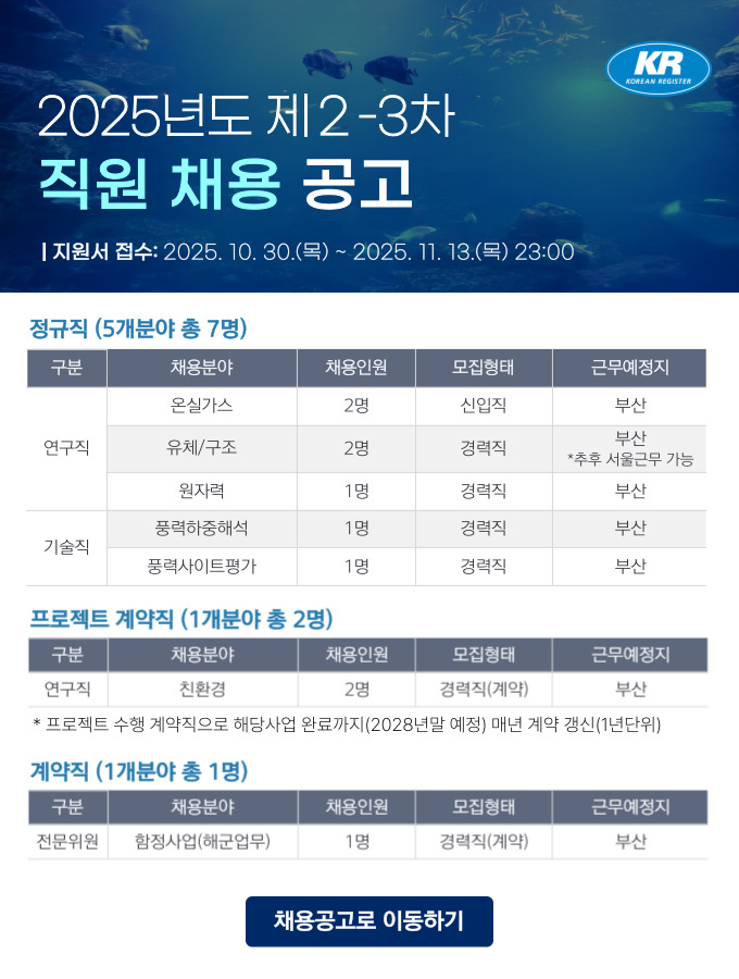 재공고 입찰 : 2025년 한국선급 제2,3차 공개채용 대행용역