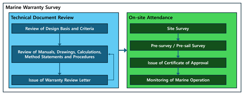 在海洋工程(Offshore Construction)领域中,广泛作为标准条款使用的 WELCAR(Wellington Construction All Risk)保险条件基础上,JNRC(Joint Natural Resources Committee)的 Upstream/Renewables Warranty Endorsement,以及特定保险公司或保险项目所采用的 Marine Warranty Clause / MWS Endorsement,均要求在海上运输、海上重新组装、安装及试运行过程中,委任具备丰富技术与经验的独立 MWS 机构。因此,在海上风电建设项目中,强制性适用海上保证调查(MWS)已成为一种趋势。
