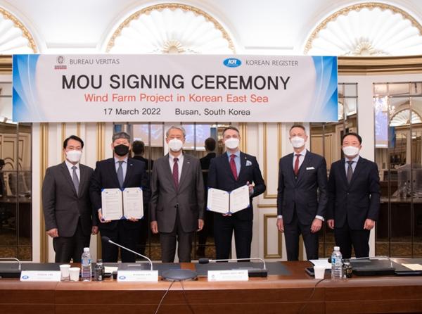 Korean Register (KR) and Bureau Veritas Marine & Offshore (BV M&O) signed a Memorandum of Understanding (MoU) covering floating offshore wind development in Korea’s East Sea on 17 March.