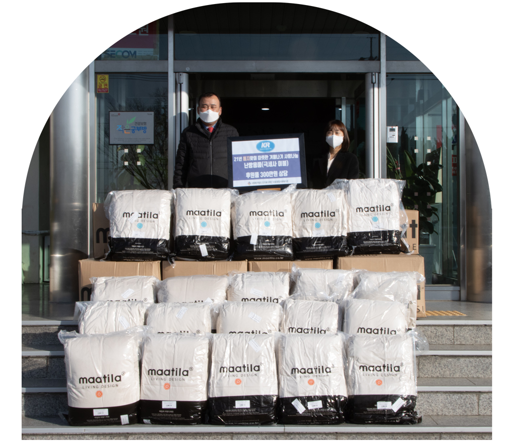 KR이 후원한 난방용품은 낙동종합사회복지관에서 준비한 동지팥죽 꾸러미에 담겨 65세 이상 저소득 어르신 100여분께 전달됐습니다.